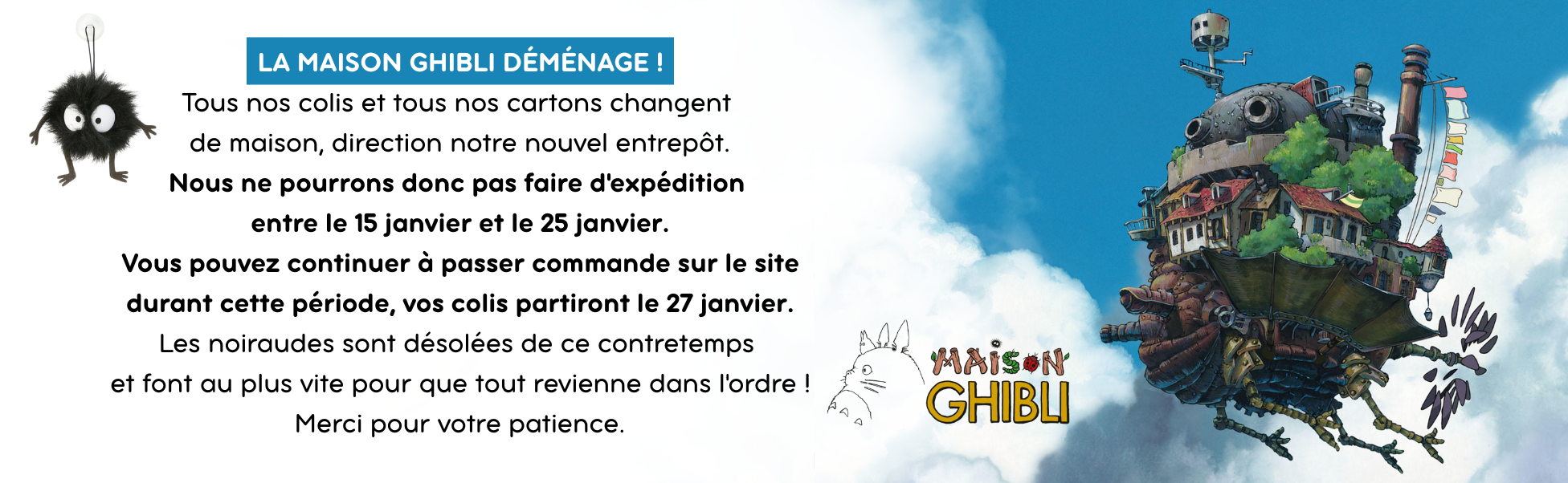 Nous travaillons directement avec le Studio Ghibli, en tant que fabricant et distributeur pour l’Europe, afin de vous proposer des produits officiels Studio Ghibli fabriqués par nos soins ou importés depuis le Japon.